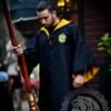 Túnica con bordado directo (NO parche, sin bordes). Forrada interior completamente doble. Incluye bolsillos, uno para varita y otro para artículos personales. Gorro puntiagudo como en las películas, mangas anchas como en las películas, túnica de un solo corte (sin mangas pegadas), caída acampanada original.